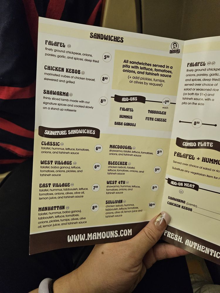If you're looking for authentic Middle Eastern flavors in the heart of New York City, look no further than Mamoun’s Falafel. Located in Greenwich Village, this cozy spot offers a wide range of options for both meat lovers and vegans alike. Customers rave about the robust falafel, crunchy on the outside and tender on the inside, served in warm pita bread with flavorful tahini sauce. The Tabbouleh Salad is a refreshing complement to the hearty falafels, with a burst of freshness in every bite. The quick and efficient service adds to the overall experience, making this spot a must-visit for anyone craving a taste of NYC nostalgia. With plastic-free packaging and a commitment to quality ingredients, Mamoun’s Falafel is a classic culinary landmark that continues to charm locals and tourists alike. Make sure to bring cash and enjoy a delicious meal that won't disappoint.